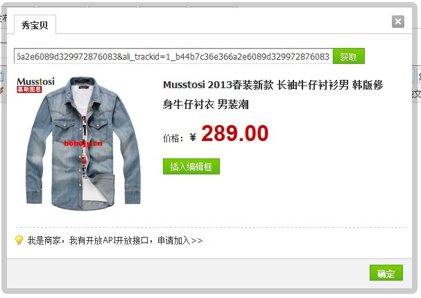 秀宝贝已升级淘宝客最新接口,由于淘宝客API权限必须是阿里妈妈(淘宝客)等级为金冠的账号的才能申请使用。如果由于阿里妈妈等级不够,无法申请淘宝客API权限的网站,可以选择同时安装获取淘宝商品无须淘客API的模块,安装此模块后无需淘宝客API权限即可分享淘宝商品!同时安装了标签淘客并设置好还可以获取商品当前促销价。。但是也要结合标签淘客才能获得佣金。