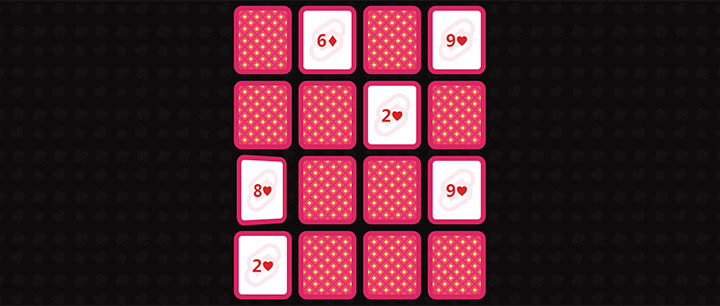 一款考验记忆力的js扑克牌翻牌配对网页小游戏代码,玩法:连续点击翻开两张扑克牌,相同则配对成功,直到所以扑克牌都配对成功,你就胜利啦。