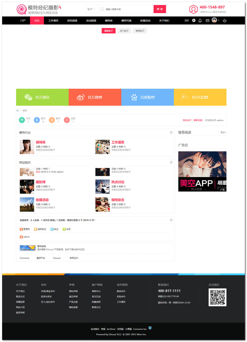 模特经纪摄影类展示图集网站源码 商业版 模特时尚门户论坛 discuz整站带数据