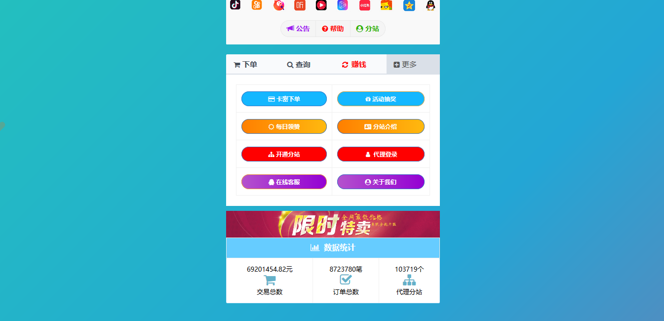 2.进入彩虹代刷后台找到模板设置选择 Cool模板,