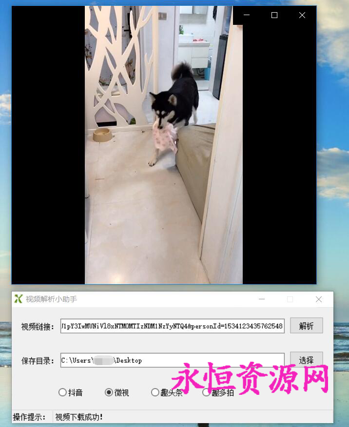 支持平台:抖音、微视、趣头条、趣多拍。无水印