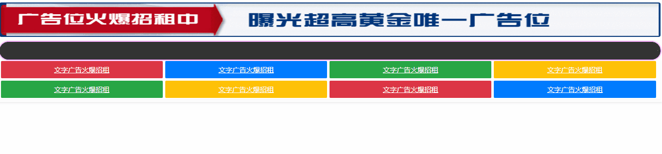 .txtguanggao{width: 100%;overflow: hidden;display: block;box-shadow: 0 1px 2px 0 rgba(0,0,0,.05);}.txtguanggao a{width: 24.5%;float: left;border-radius: 2px;line-height: 35.35px;height: 35.35px;text-align: center;font-size: 14px;color: #fff;display: inline-block;background-color: rgb(255, 153, 159);margin: 2.5px;transition-duration: .3s;}.txtguanggao a:nth-child(1) {background-color: #dc3545;}.txtguanggao a:nth-child(2) {background-color: #007bff;}.txtguanggao a:nth-child(3) {background-color: #28a745;}.txtguanggao a:nth-child(4) {background-color: #ffc107;}.txtguanggao a:nth-child(5) {background-color: #28a745;}.txtguanggao a:nth-child(6) {background-color: #ffc107;}.txtguanggao a:nth-child(7) {background-color: #dc3545;}.txtguanggao a:nth-child(8){background-color: #007bff;}.txtguanggao a:hover{background:#FF2805;color:#FFF}@media screen and (max-width: 1000px) {.txtguanggao a{width: 47.96%;float: left;border-radius: 2px;line-height: 35.35px;height: 35.35px;text-align: center;font-size: 14px;color: #fff;display: inline-block;background-color: rgb(255, 153, 159);margin: 2.5px;transition-duration: .3s;}}