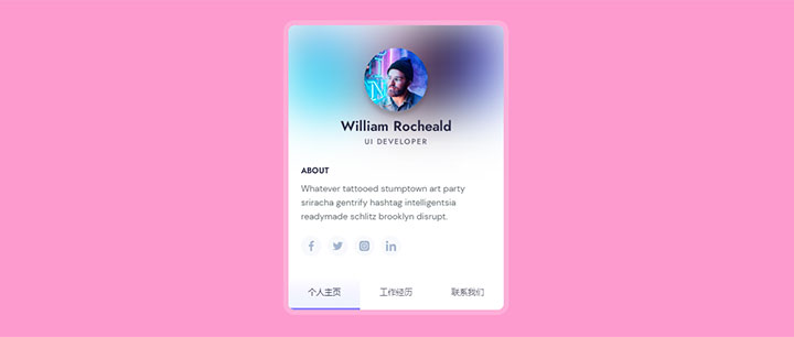 基于html5+css3制作的一款精美个人简历卡片界面切换特效,非常的简洁,可以说是迷你型网页简历。