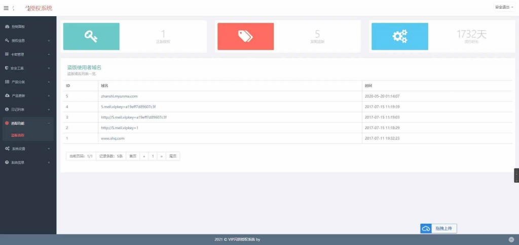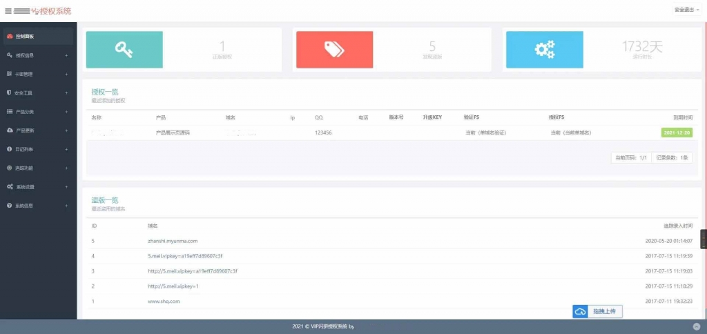 域名ip双重验证功能等等 修复盗版检测,确保实时查看盗版 修复在线加密系统;