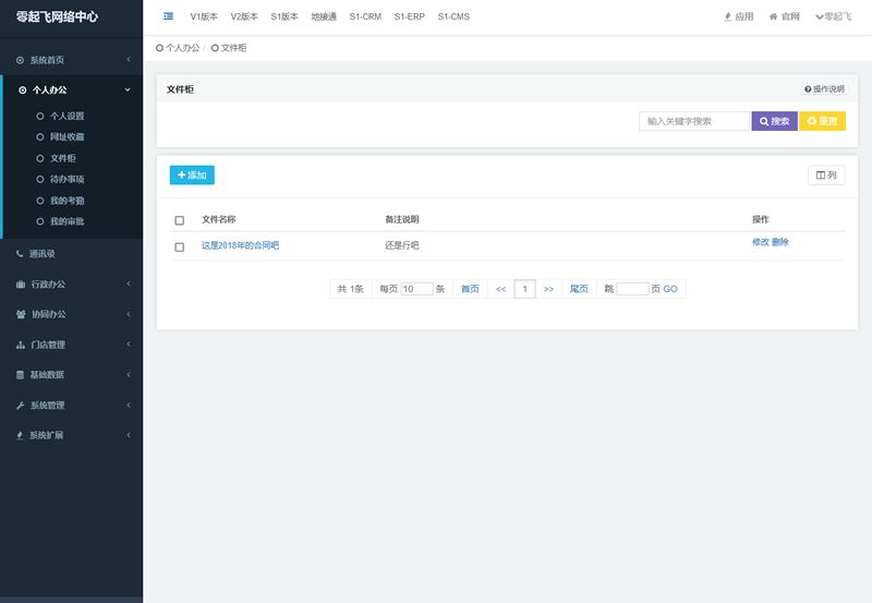 包含功能点有公告资讯,公文管理,资产管理,证照管理,合同管理,制度职责,