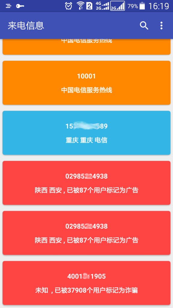 添加号码信息到系统通话记录。添加诈骗,骚扰,广告,响一声,自动挂断等信息到系统通话记录。一个获取来电归属地和其他信息(如推销,诈骗)的安卓应用
