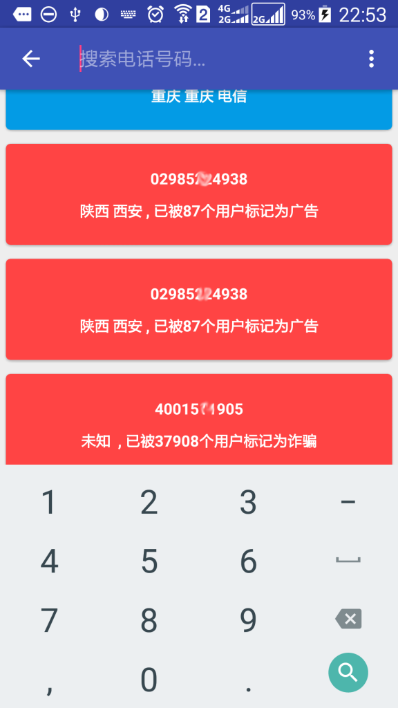 一个获取来电归属地和其他信息(如推销,诈骗)的安卓应用