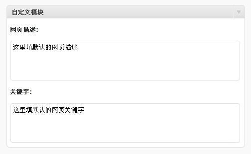 通常在添加自定义字段和其值的时候,我们都是手动去”自定义字段”模块下拉框中去选择相应的字段,然后再输入其值,最后还要提交等待一小段时间,似乎有点麻烦。那么可不可以给这些常用的自定义字段创建一个单独的面板,直接在里面填内容就可以了呢?就像文章标签,直接添加标签即可,不需要单独提交。答案是可以的,下面是效果图:
