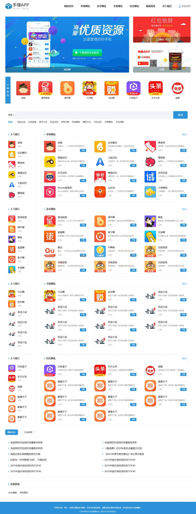 一款简洁蓝色的手机软件应用app下载排行,app下载平台,最新手机app发布网站响应式织梦模板。