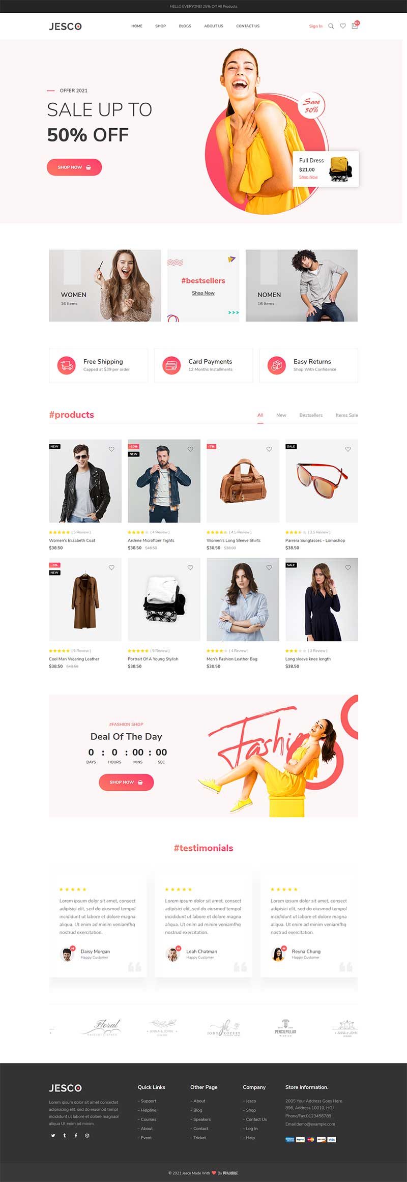 一款时尚服装销售电子商务HTML响应式模板。在这个网页模板中有36个以上的HTML页面和2个不同的主页。你会发现在主页上有一个大的,吸引眼球的幻灯片滑动切换效果,可以方便地突出特价商品和促销活动。下拉菜单功能,能高效地浏览您的所有网页。它提供了许多独特的功能,如平滑动画,谷歌字体,字体图标,干净的标记,动态联系形式与Ajax,快速页面加载,SASS,以及更多。
