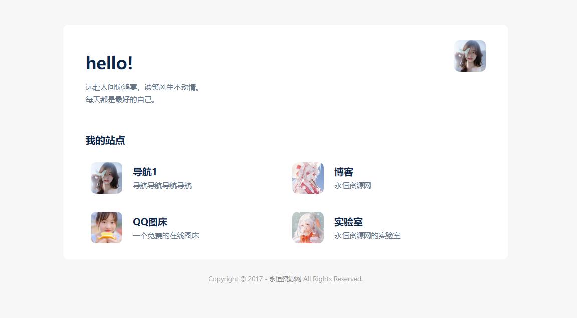 非常漂亮的自适应个人主页卡片导航 HTML源码,用的导航网站是非常重要的。现在,我将为大家分享一个自适应、耐看且有详细注释的个人主页网址导航 HTML 源码。