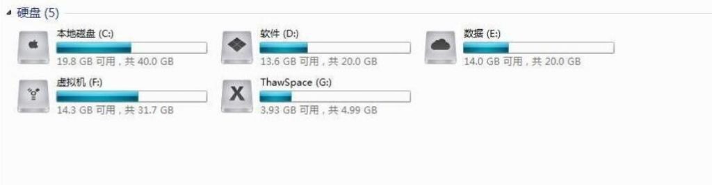 系统默认的硬盘图标如上图,微软设计的当然十分精美,但长久看来有点审美疲劳了,我们需要给它换换。