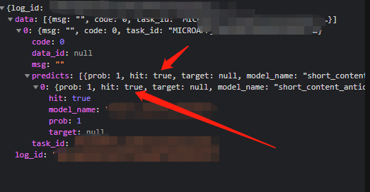 检测结果-置信度-结果,当值为 true 时表示检测的文本包含违法违规内容