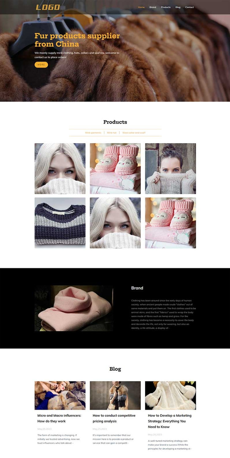 PbootCMS内核开发的网站模板,该模板适用于服装外贸网站、英文网站等企业,当然其他行业也可以做,只需要把文字图片换成其他行业的即可;