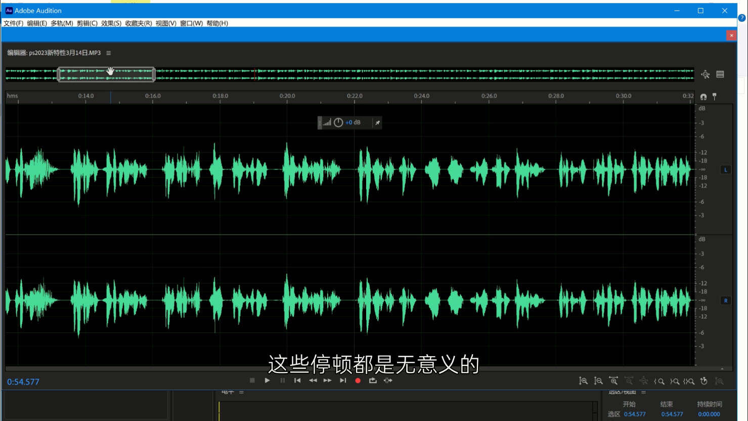 以我这段口播音频举例,放大看,会发现有很多的停顿,这些停顿都是无意义的,如果在au里面一断一断删除,可是一个大工程,但是用自动剪辑神器,就很简单了。