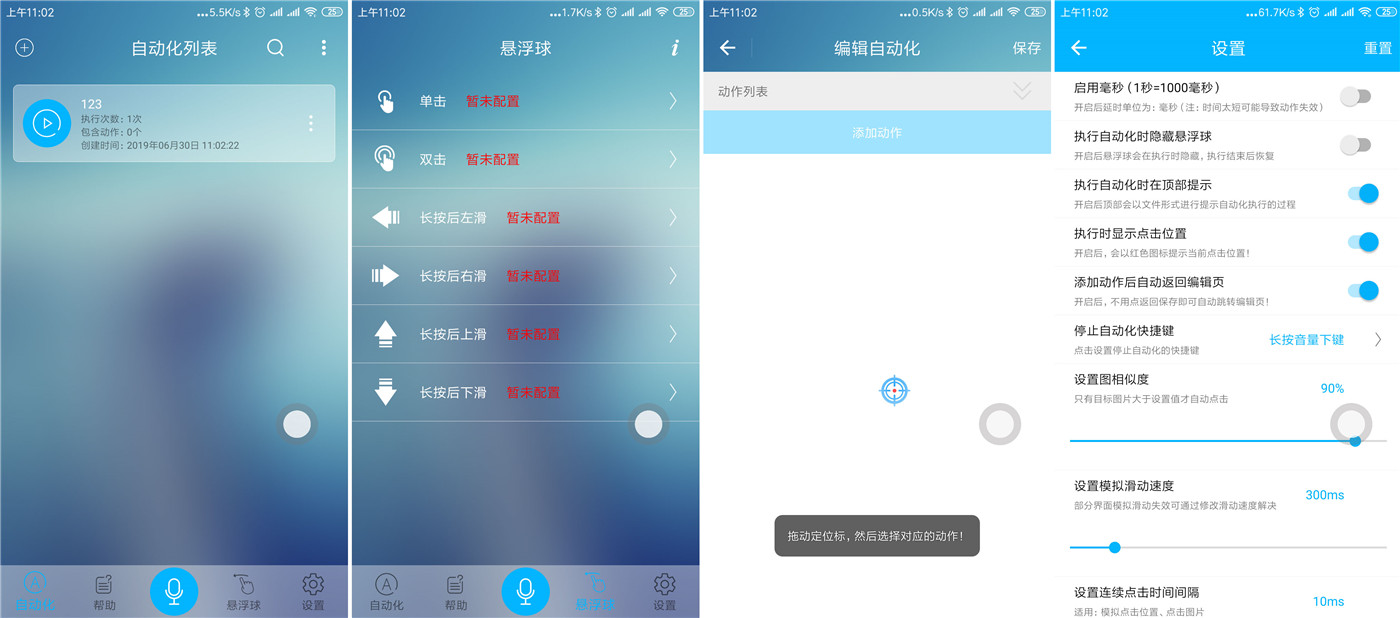 一款支持免ROOT的自动化执行APP,旨在减少用户对手机的重复操作或点击,实现一键直达的功能。