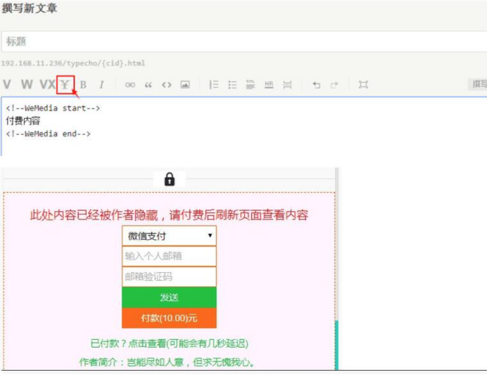 typecho插件文章免登陆付费阅读插件付费阅读自媒体插件源码。