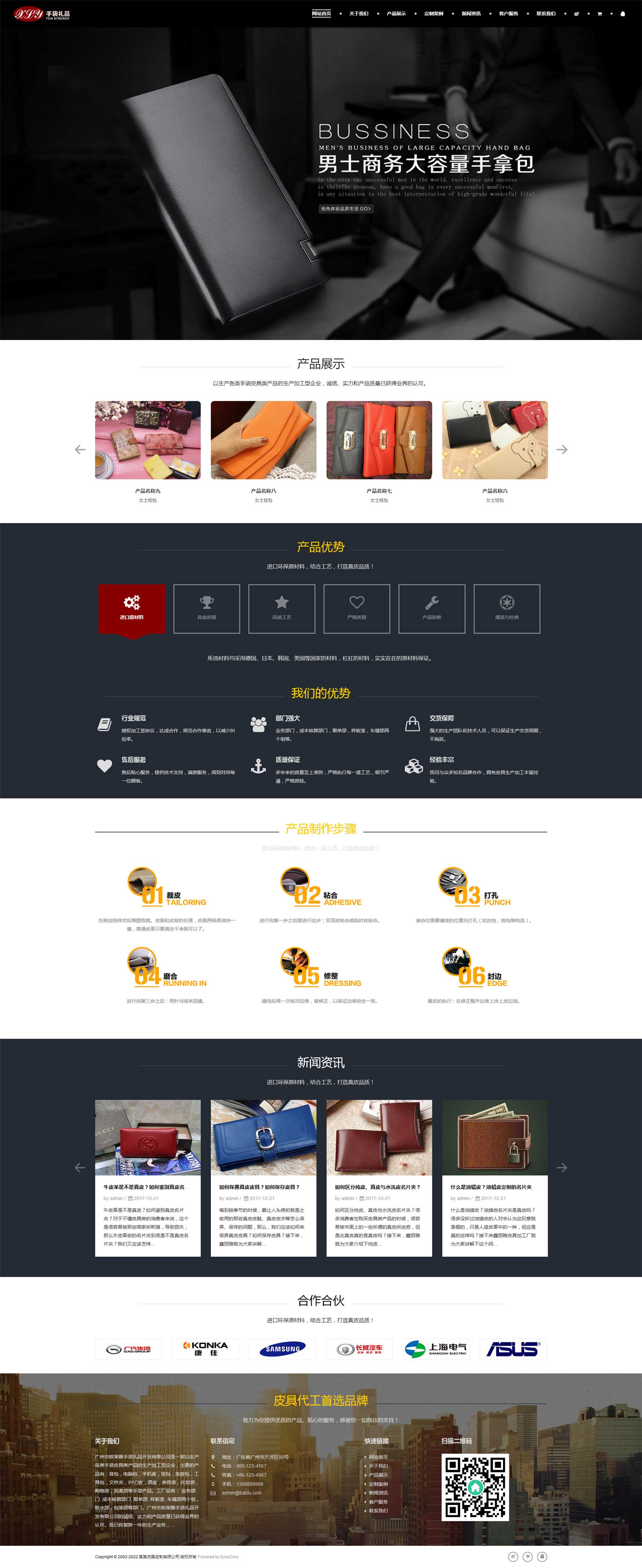 易优CMS响应式皮具定制手袋皮包网站模板,EyouCMS皮具类企业网站模板。适用于服饰、箱包、礼品、玩具类企业网站开发使用。