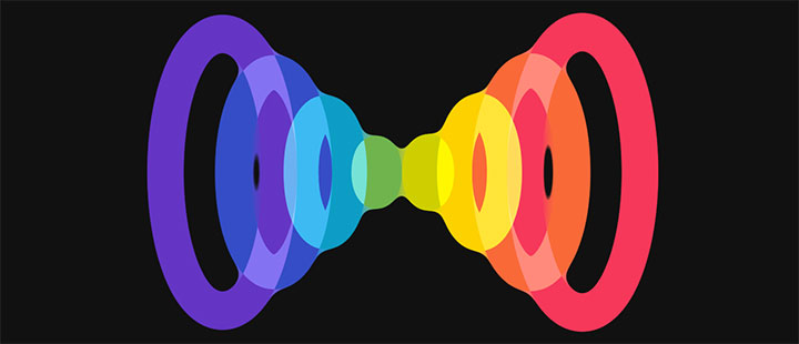 html5基于svg绘制的3D同心圆旋转动画特效,多个大小不一的彩色圆圈组合的3D同心圆旋转动画效果。