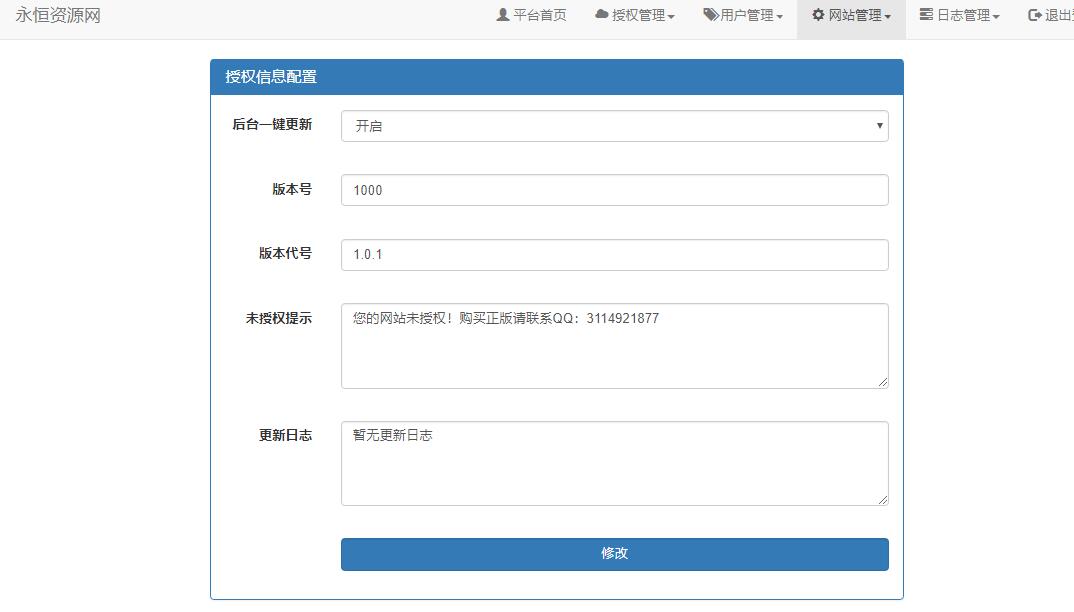 3.用户管理 授权管理 开启在线更新 支付接口配置