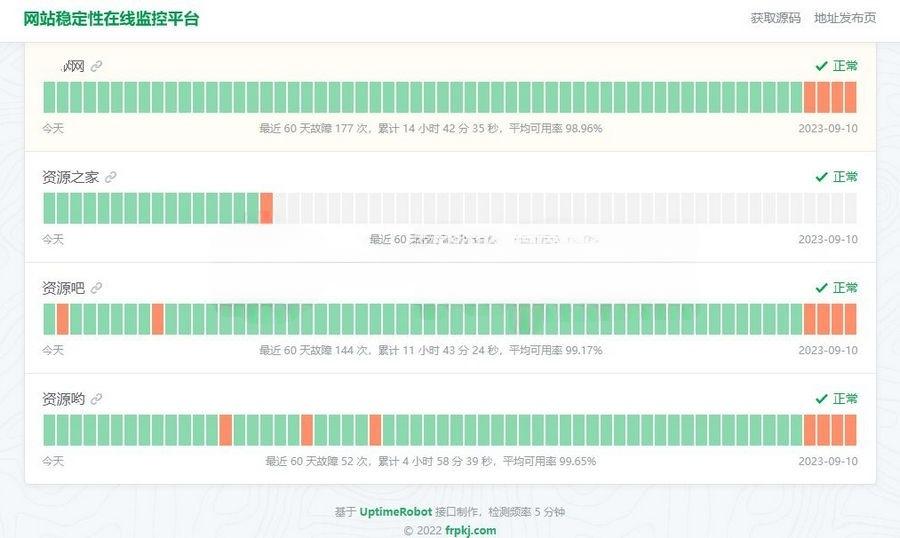 HTML网站稳定性状态监控平台源码,一款网站稳定性状态监控平台源码,它基于UptimeRobot接口进行开发。当您的网站遇到故障时,该平台能够通过邮件或短信通知您。