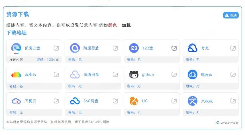WordPress插件文章下载增强CoreDownload v1.0.4,是一款高级WordPress 下载增强插件,支持几乎所有网盘,为WordPress增加任意下载功能,目前免费提供使用。