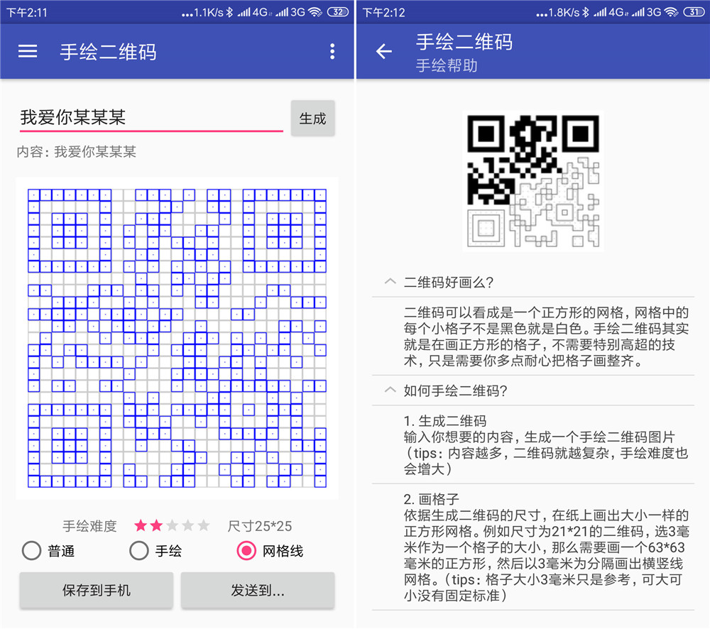 手绘二维码app是一款能够帮助你轻松画出二维码的神器,可以告诉你二维码的尺寸以及格子数,