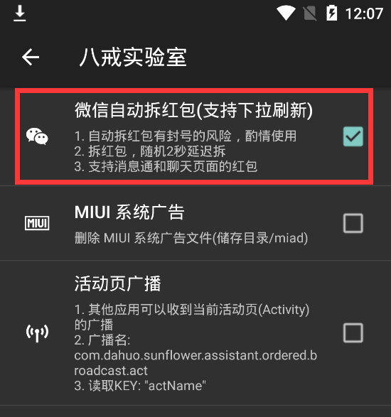 实验室功能里面还有个微信抢红包功能,可以自行体验~