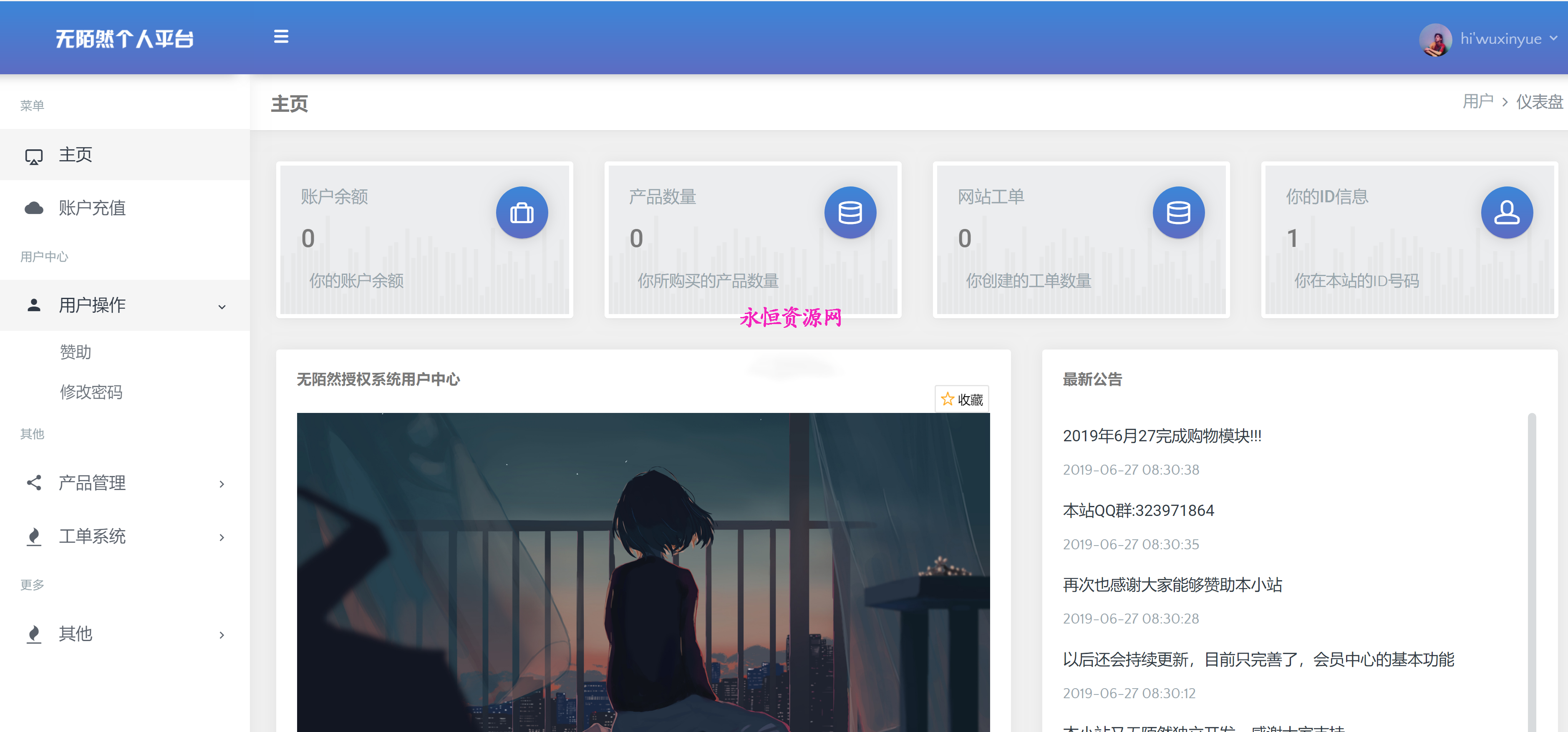 然后导入打包好的,数据库信息,后台地址/admin 默认账号:admin 密码:admin 后台可对前台进行管理。
