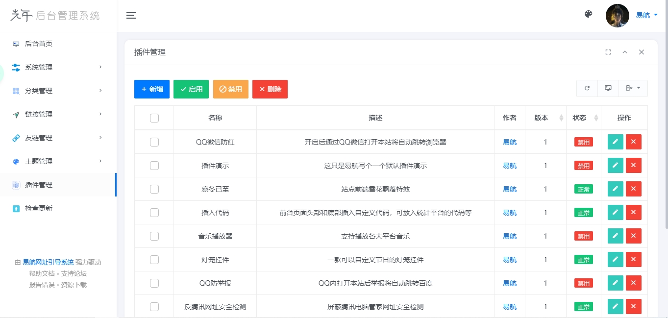 而 易航网址引导系统 综合了目前网上大多数UI漂亮的引导页面 是易航原创一款极其优雅的易航网址引导页管理系统,这虽是是一款轻量级系统,但功能繁多而不沉淀。它支持多种前台主题互换和插件化开发