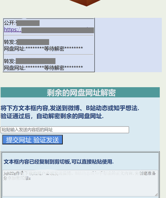 现新版本转变为,将网盘网址等文字内容进行加密,完成验证任务后,解密还原文字内容。