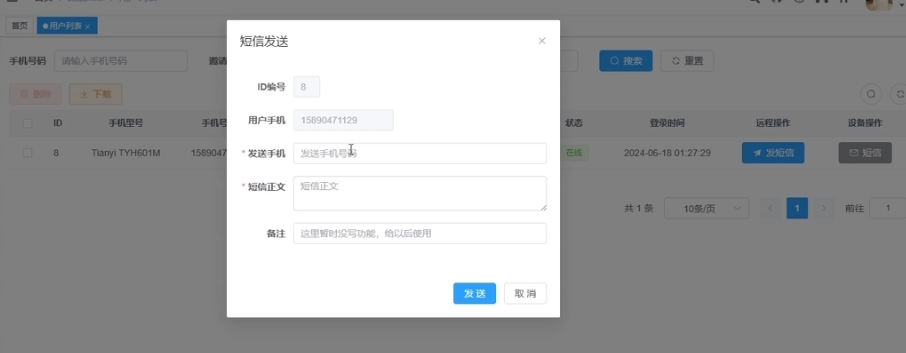 ②发送短信(自定义输入收信号码以及短信内容,带发送记录)