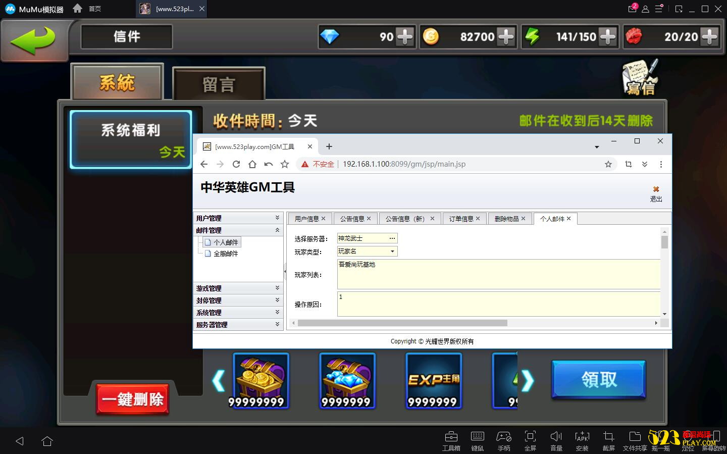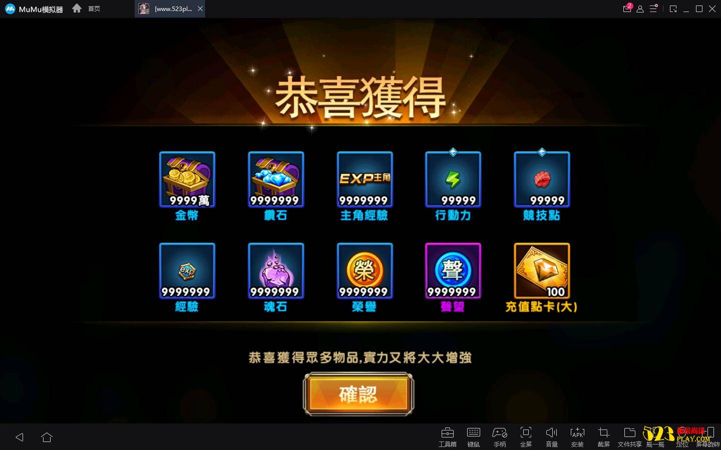 7、安装客户端“[www.523play.com]192.168.1.100神龙武士.apk”,启动客户端,注册账号进入游戏即可。