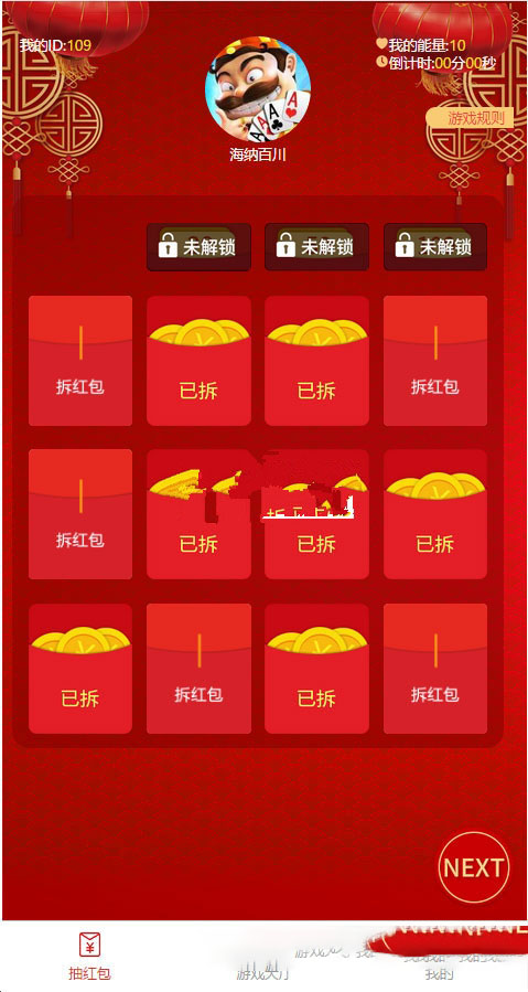 1 用户拆10元 20元 50元 100元区间红包 需要先购买资格
