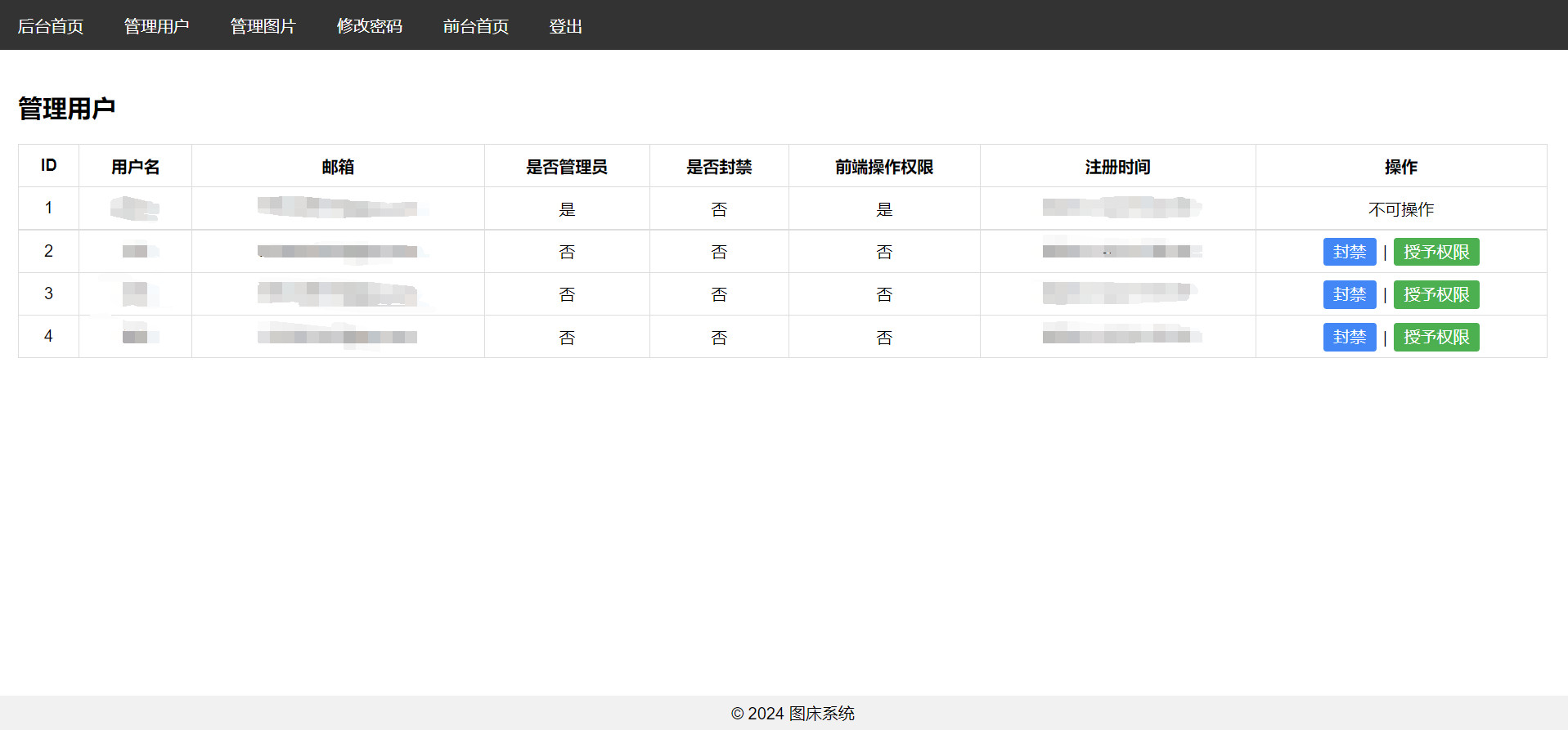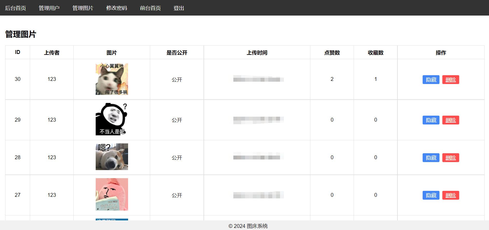 - 强大的后台管理系统:新版本中加入了后台管理模块,管理员可以轻松实现用户管理、图片管理等操作,并能够灵活地调整用户的公开隐藏权限设置。