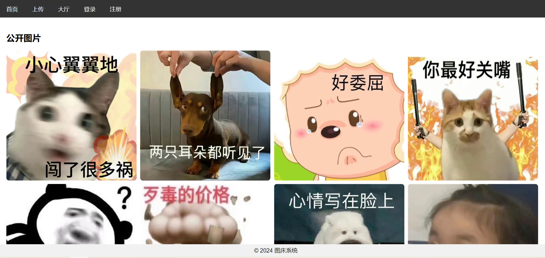 - 用户系统优化:支持用户登录注册,每位用户都可以根据需要自定义其图片的公开或隐藏状态,并拥有删除等操作权限。