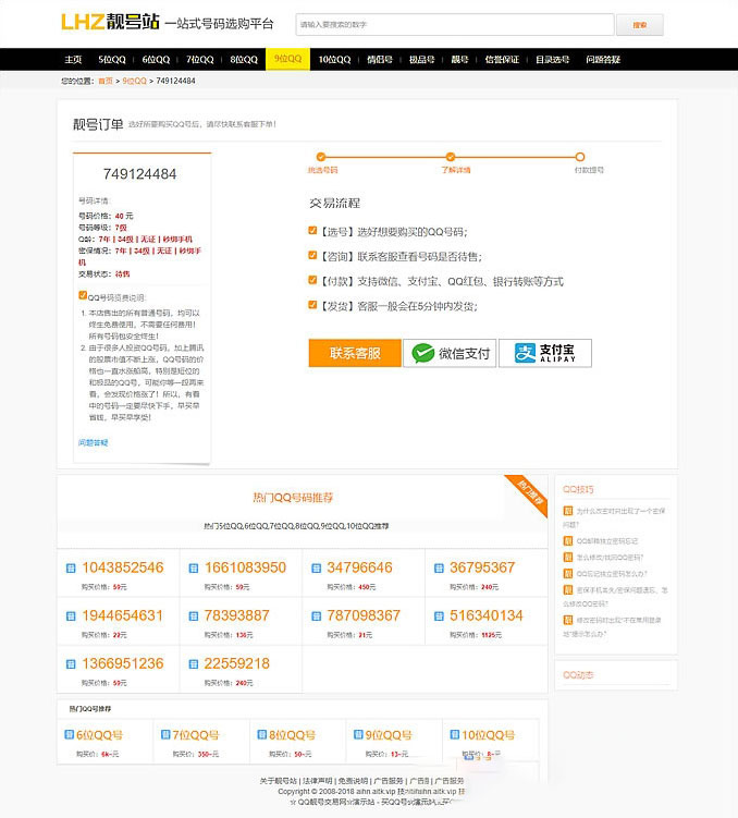 QQ号码/手机号交易平台,QQ靓号买卖网站源码,网络账号在线发布交易平台整站源码!适用于各种靓号在线选号交易平台!