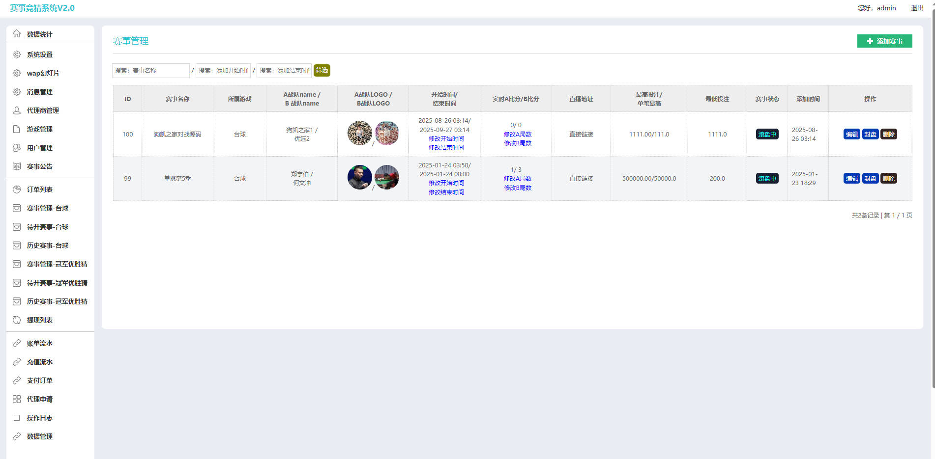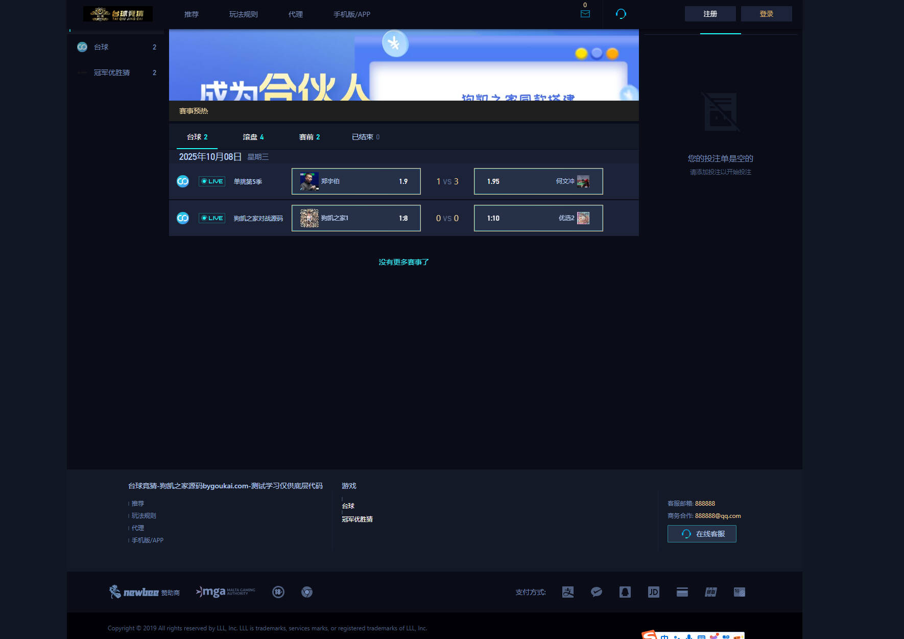 游戏胜负竞猜系统源码/台球有奖竞猜/自定义赛事/冠军优胜猜