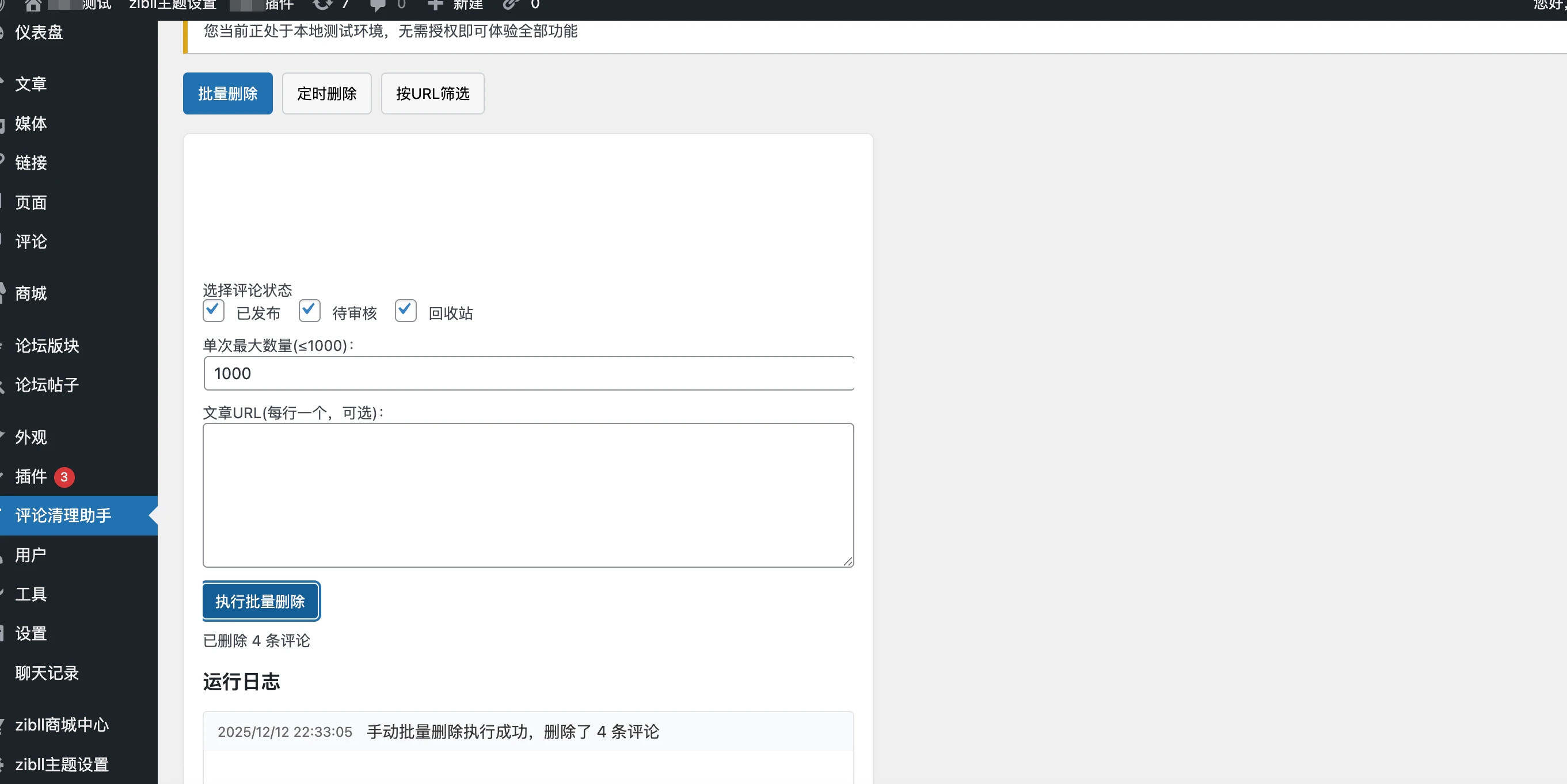 这是一款独立的WordPress评论清理插件,支持批量删除评论、按 URL 筛选、定时自动删除功能,非常的实用,简单的测试了,喜欢的自行安装吧,后台和服务器都可以上传安装!!