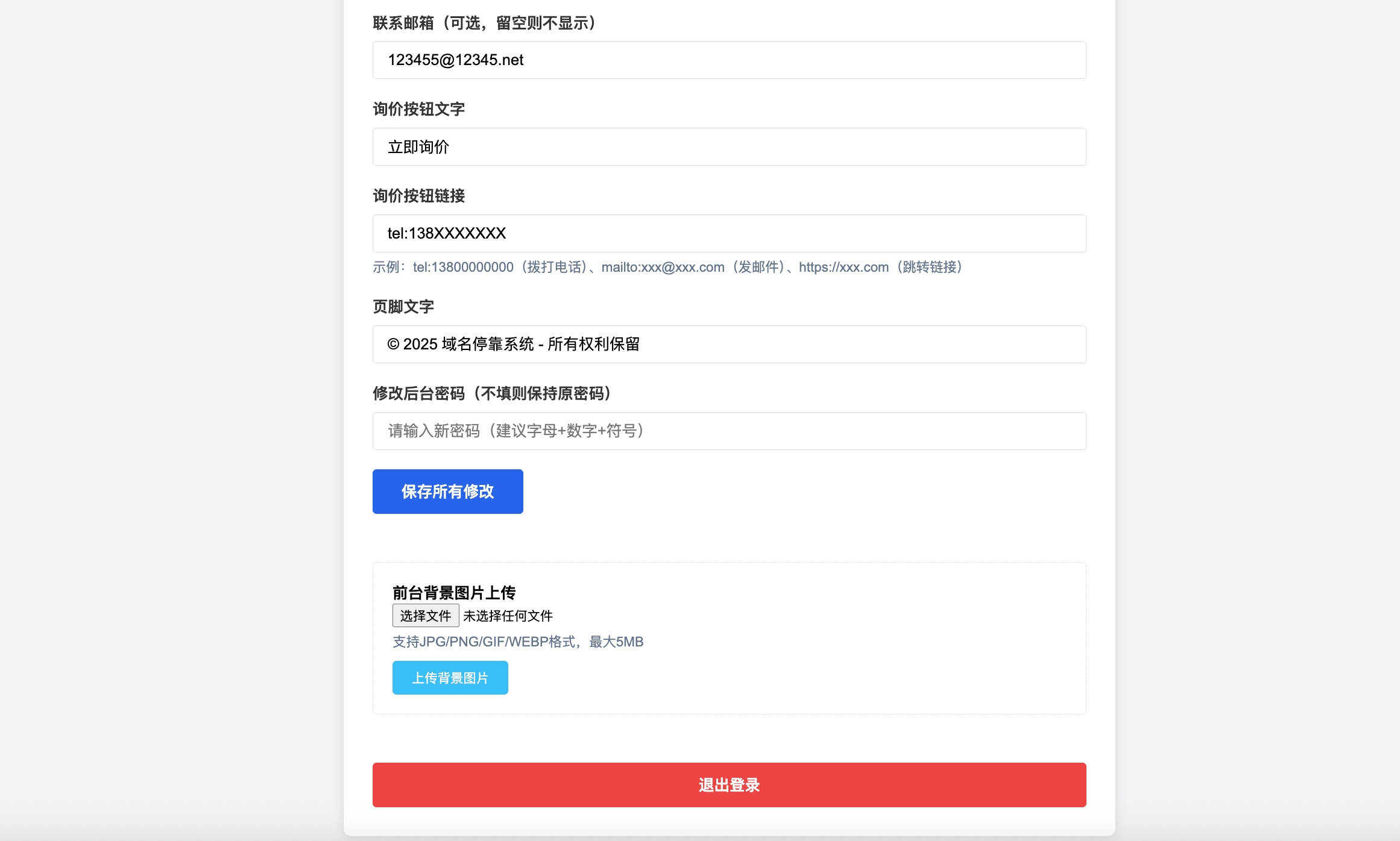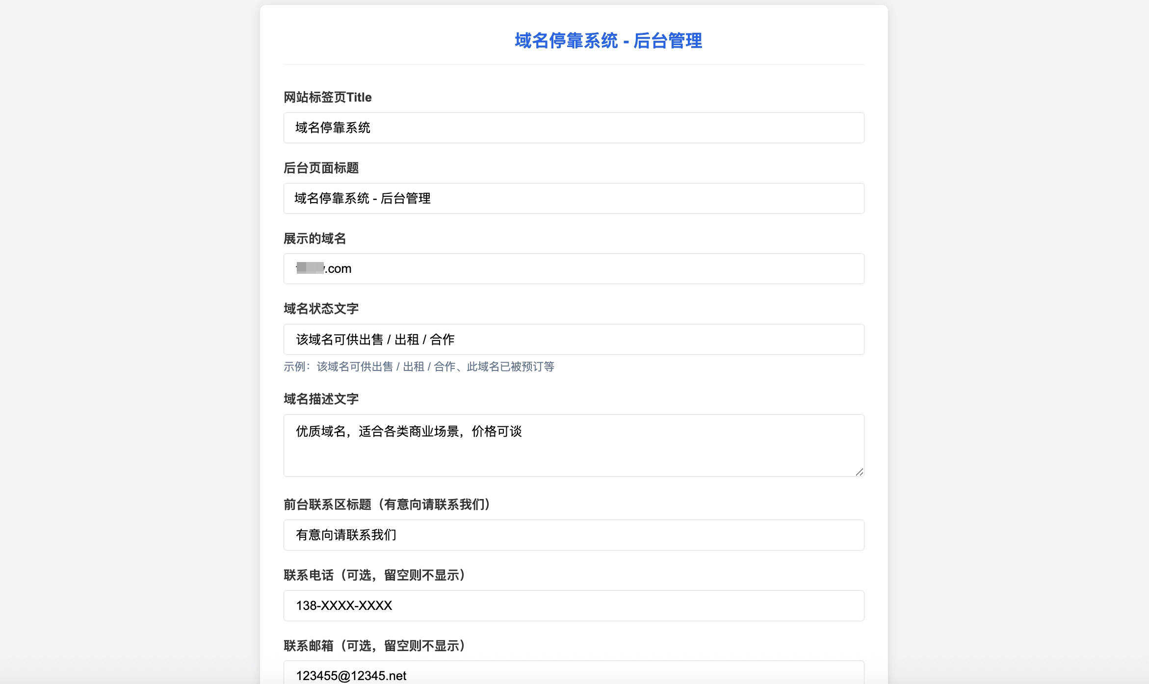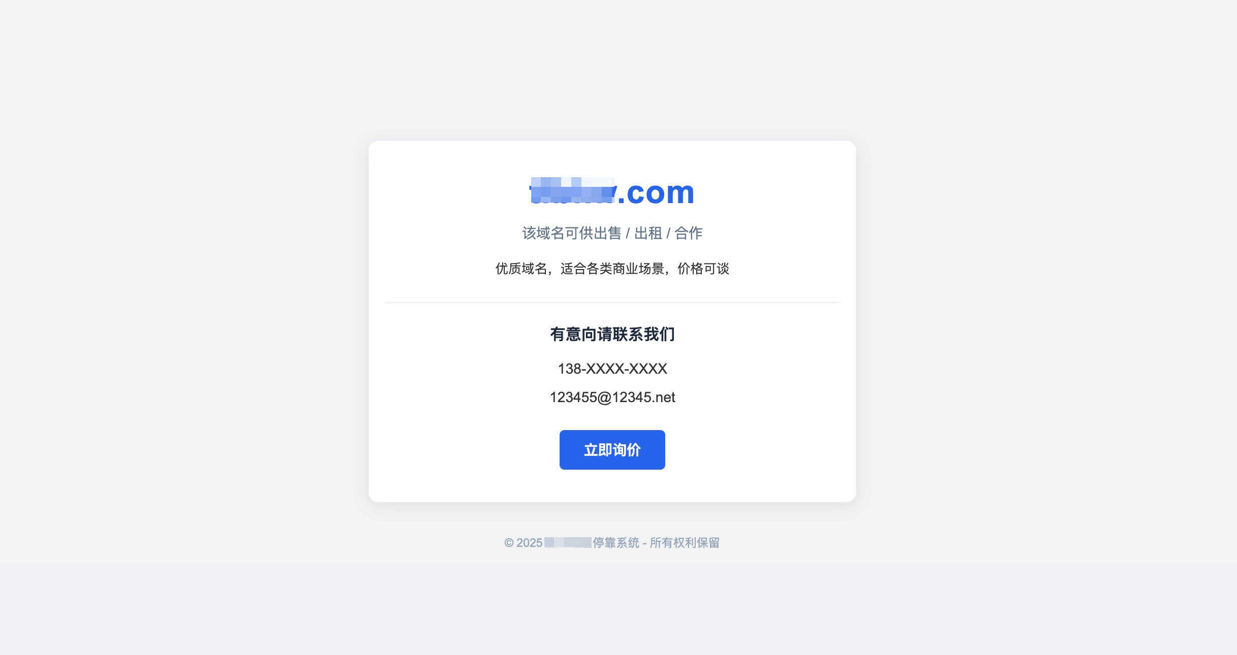 这是一款蓝白色简约域名停靠源码,可以当做自己的域名售卖页,还是比较不错的,并且带有后台版本的,后台可以修改文字和邮箱以及可以上传背景图片,喜欢的自行部署吧!