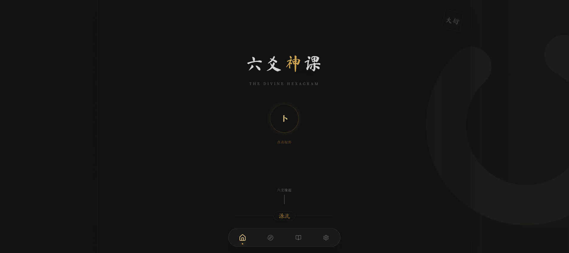 这是一款纯前端开发的六爻起卦工具,基于前端技术栈构建,无需后端支持,可直接在本地网页中使用。工具严格遵循传统六爻知识体系,涵盖干支排盘、爻变等核心计算,确保专业起卦逻辑的准确性。