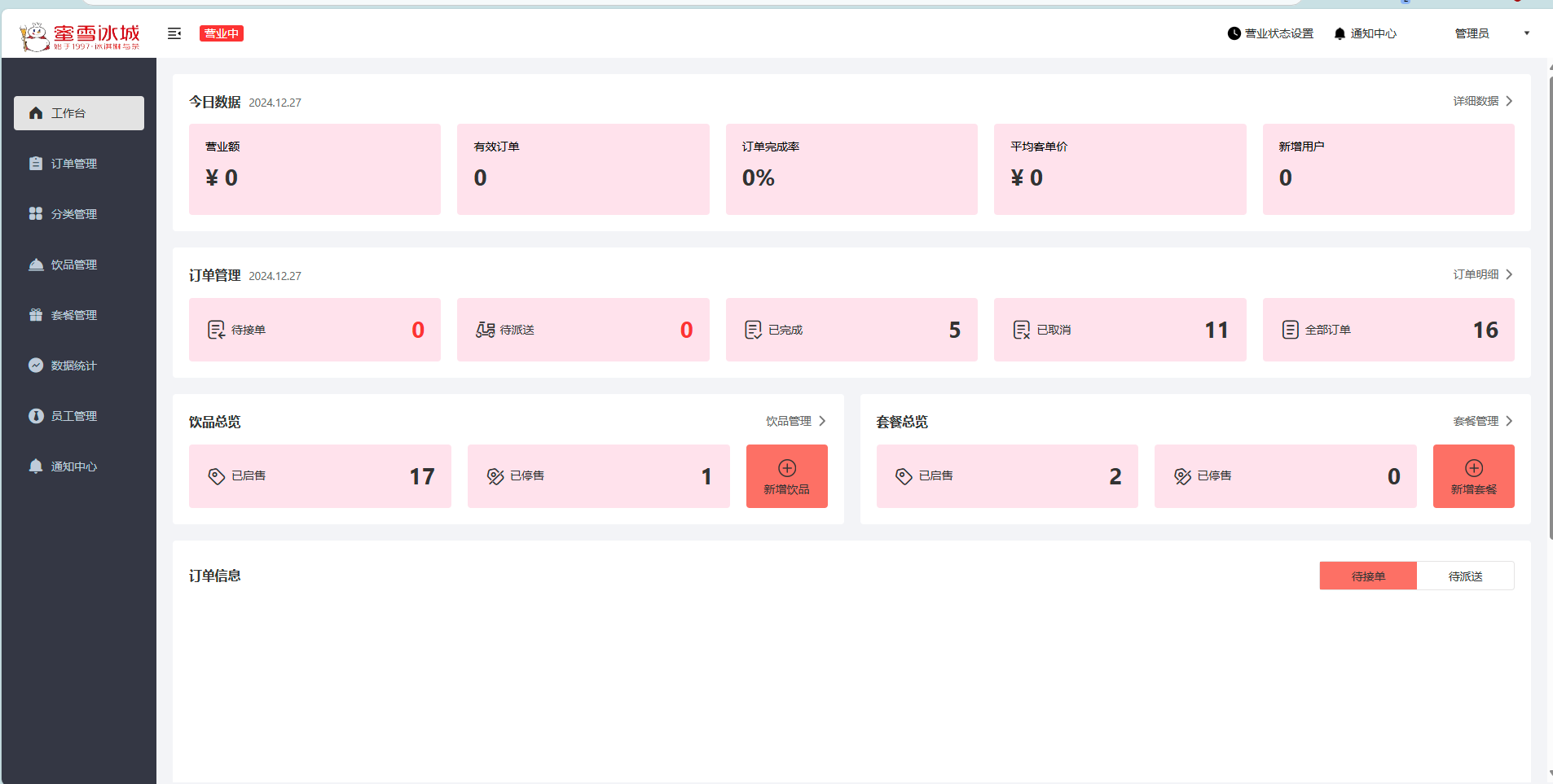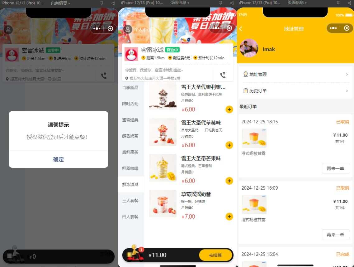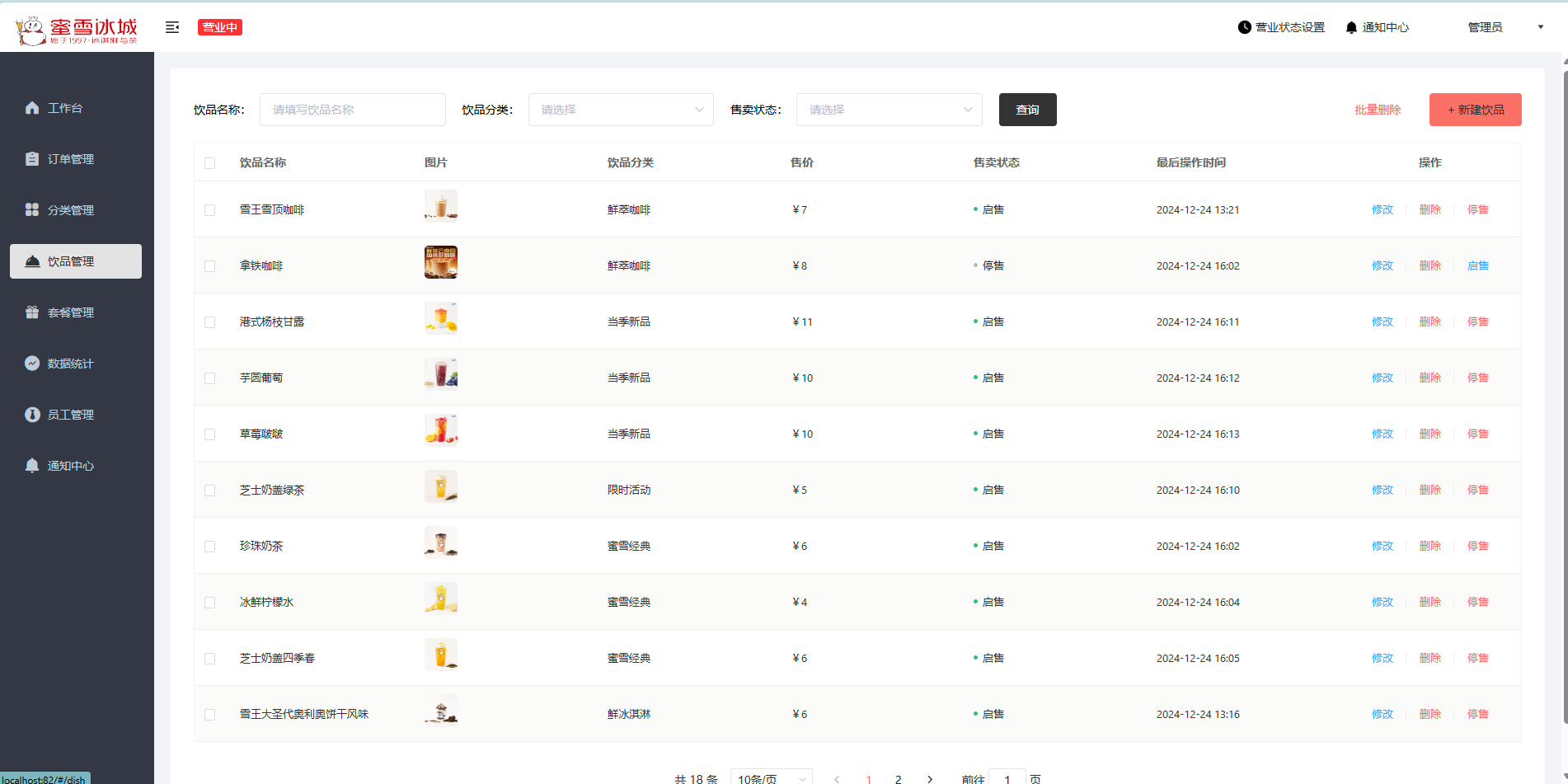 仿蜜雪冰城小程序奶茶点单系统,参考苍穹外卖,跳过微信支付(无商家微信),解决员工端删除单个菜品时的异常问题