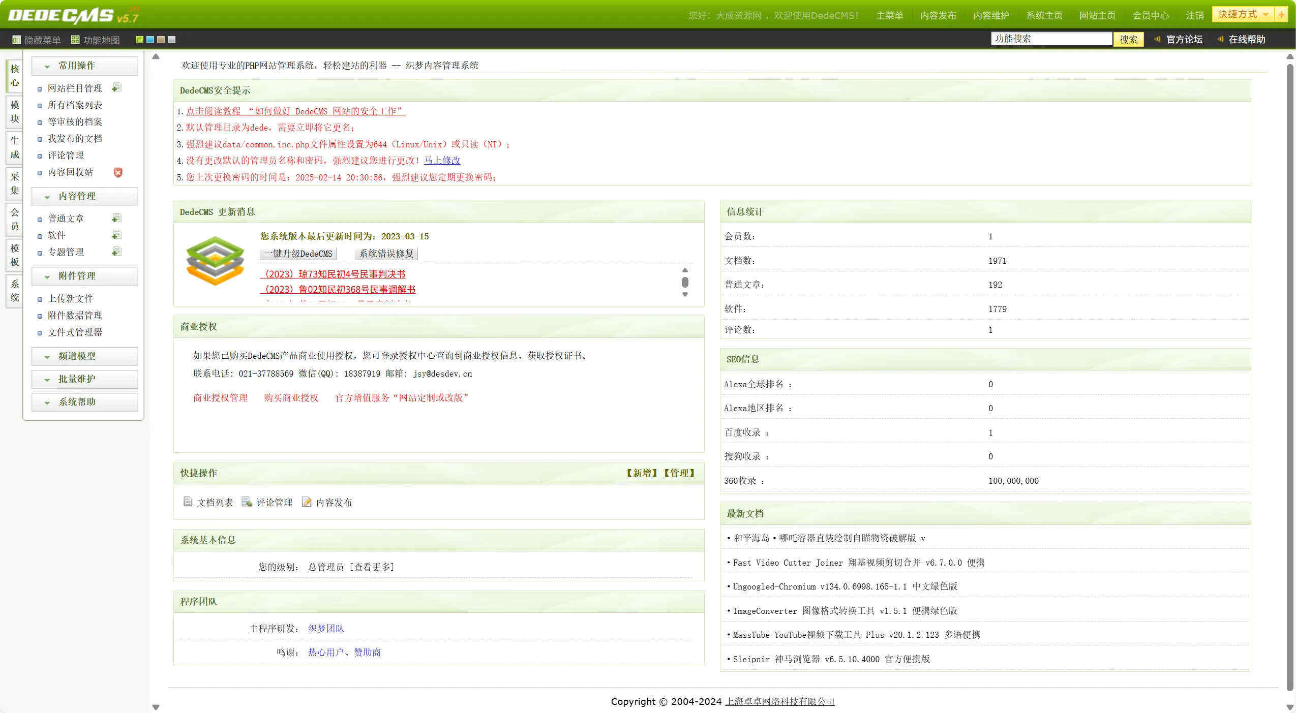 这是一套用DedeCMS搭建的资源网,模板是小刀娱乐网、善恶资源网的同款模板。系统非最新版,也请勿随意升级,会报错!系统部分文件代码有改动。