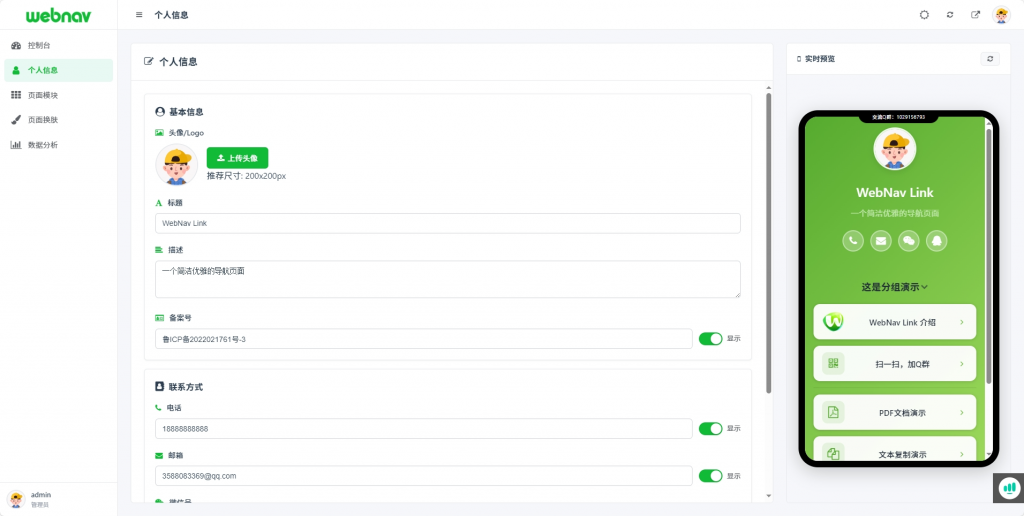 WebNav Link是一款专注“个人主页/导航页”场景的轻量级个人导航系统,让你轻松打自己的专属导航页面。开箱即用,强调配置即所见,适合想快速上线个人主页、作品集或轻型聚合页的用户。