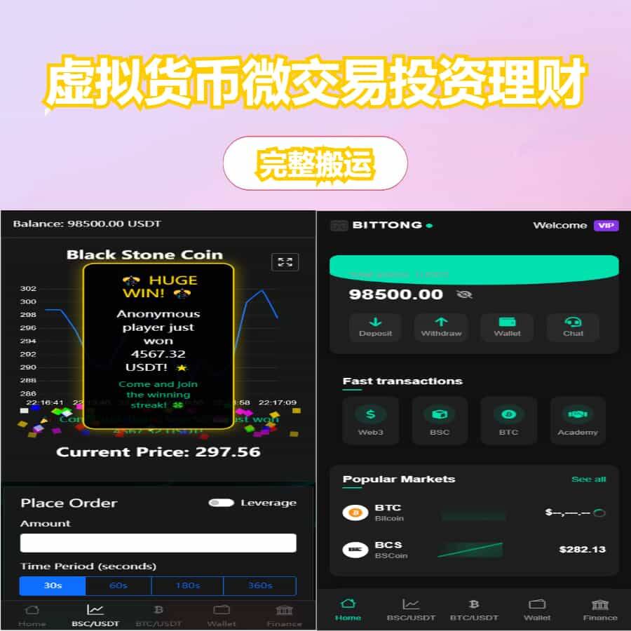 BitTong虚拟货币微交易投资理财源码/完美K线控制+代理/前端html+后端PHP