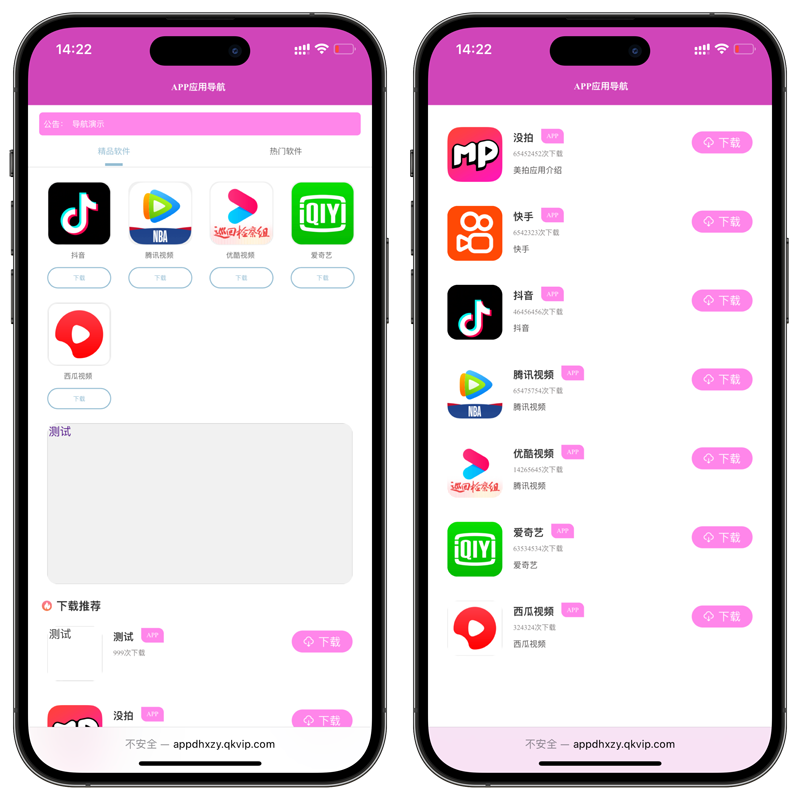非常好看的一款 App 导航下载推荐页源码,带后台,PHP 源码,Thinkphp 框架
