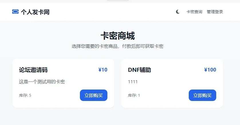 - 🏠 简洁的卡密商城界面