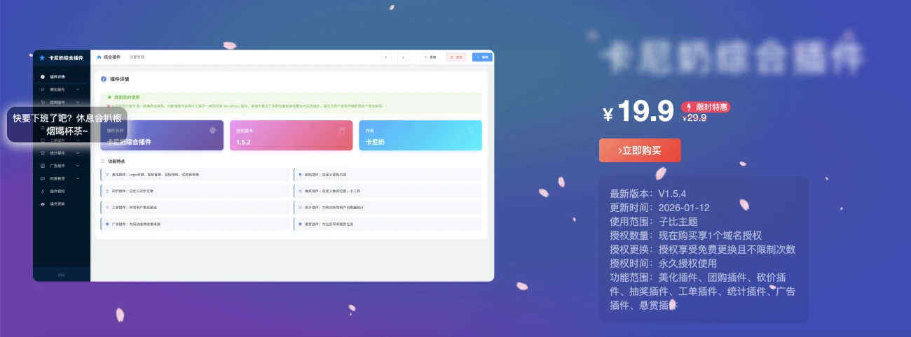 【移除授权版本】子比主题综合插件-八合一:砍价、团购、抽奖、统计、工单等
