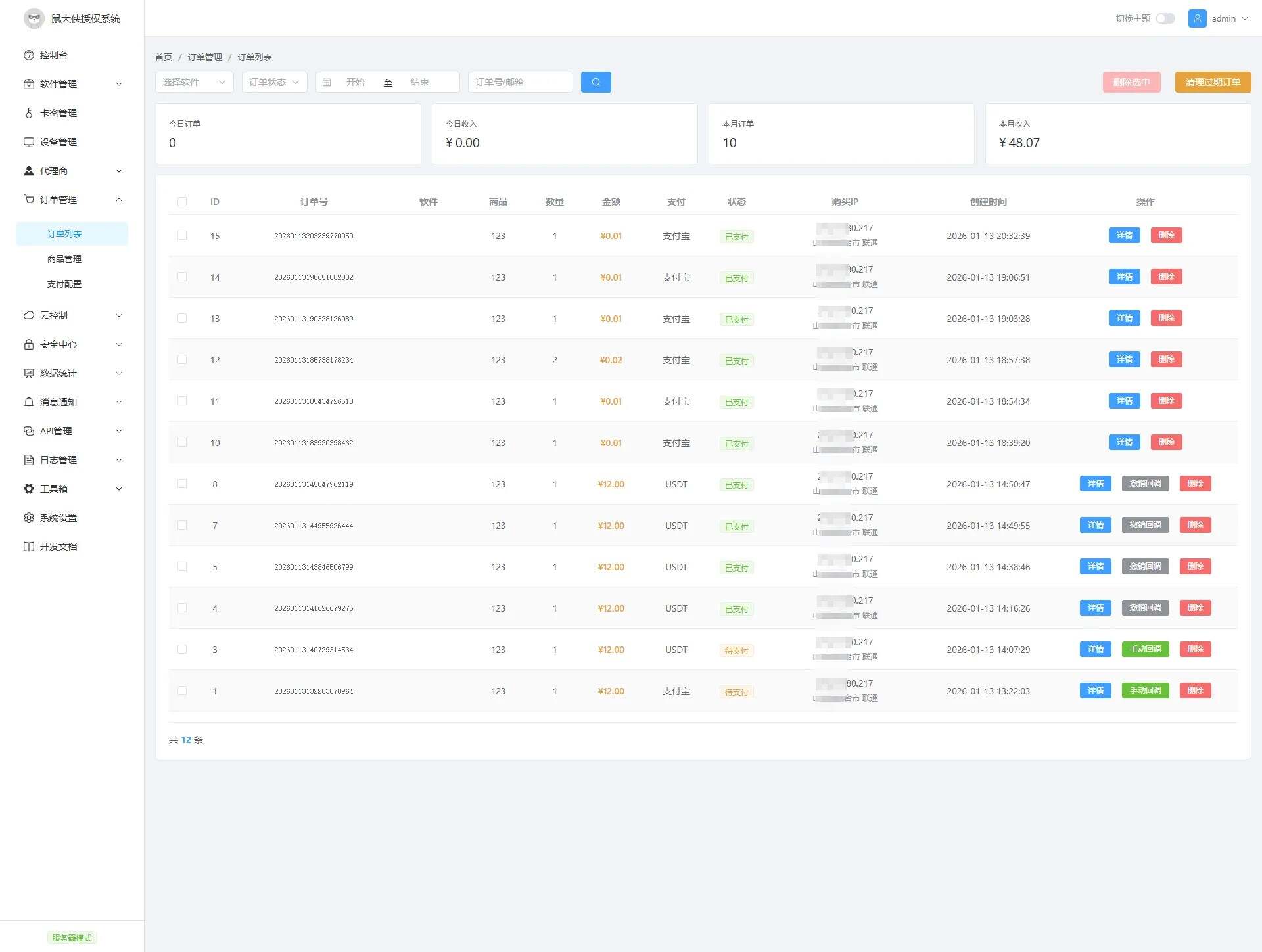 一款专业的软件授权管理系统,支持多软件管理、卡密授权、设备绑定、在线监控等功能。