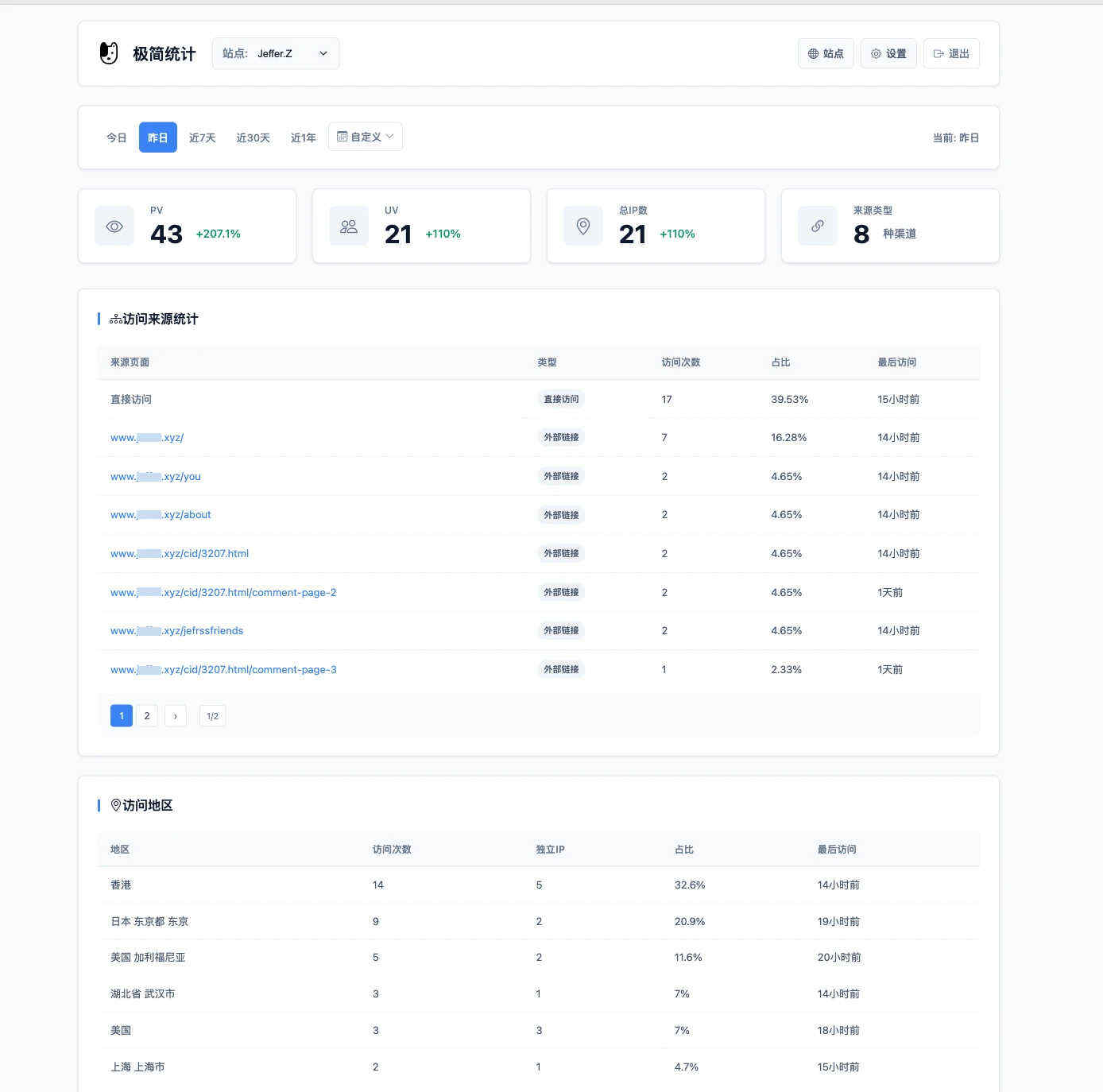 JefCounts 极简统计是一款专为博客和小型网站设计的轻量级统计系统,解决 Google Analytics 加载慢、百度统计体验差的问题。